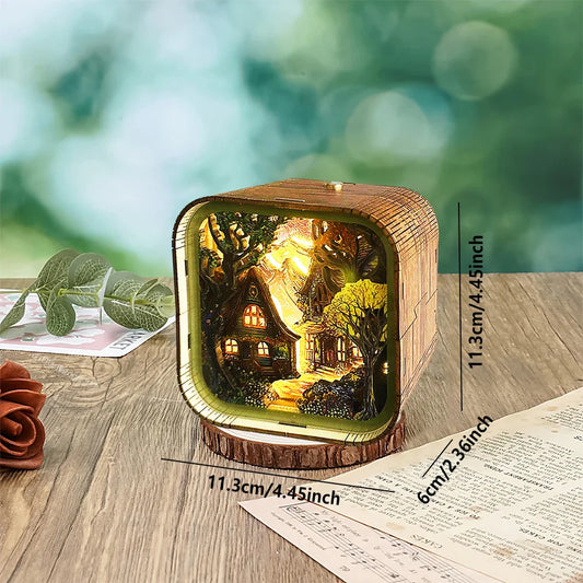 Fairy Tale Cottage Wooden 3D Night Light – DIY Kit for Magical Home Decor